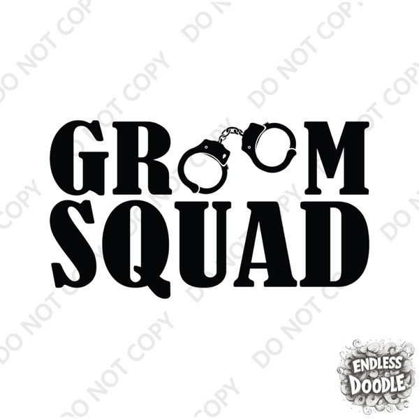 Wedding Stag Do Party DTF Transfer - Groom Squad Hand Cuffs - Do it Yourself Iron On Heat Press Hot or Cold Peel Shirt Any Material Long Lasting Full Colour